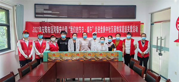 端午佳節(jié)寓意祈求健康、防疫祛病、避瘟驅(qū)毒,是傳承中華文化、展現(xiàn)民俗魅力的好時(shí)節(jié)。為確保居民度過(guò)一個(gè)歡樂(lè)祥和的端午節(jié),洹河保安公司開(kāi)展“我們的節(jié)日·端午”走進(jìn)盤(pán)庚中社區(qū)困難家庭送關(guān)愛(ài)志愿服務(wù)活動(dòng)