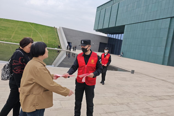 活動(dòng)中,志愿者們身穿紅色馬甲,在景區(qū)入口處向來(lái)自各地的旅客熱情地介紹文字博物館的基本情況,為游客提供旅游咨詢(xún)、路線(xiàn)引導(dǎo)和便民服務(wù)。同時(shí)向過(guò)往群眾發(fā)放《文明出游倡議書(shū)》宣傳頁(yè),積極宣傳文明旅游相關(guān)知識(shí),號(hào)召大家在出游時(shí),要樹(shù)立文明出游意識(shí),注意自己的行為舉止,遵守文明行為規(guī)范,愛(ài)護(hù)公共設(shè)施,共同維護(hù)環(huán)境衛(wèi)生,不踩踏草坪、不亂扔垃圾。