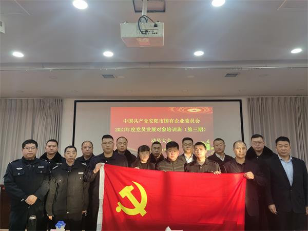 為嚴(yán)格黨員發(fā)展的政治標(biāo)準(zhǔn),全面加強(qiáng)發(fā)展對(duì)象的教育培養(yǎng),進(jìn)一步提升企業(yè)黨建質(zhì)量,落實(shí)《中國(guó)共產(chǎn)黨發(fā)展黨員工作細(xì)則》有關(guān)要求,11月30日至12月2日,中共安陽(yáng)市國(guó)有企業(yè)委員會(huì)舉辦2021年度黨員發(fā)展對(duì)象培訓(xùn)班(第三期),公司組織15名黨員發(fā)展對(duì)象參加了培訓(xùn)。11月26日上午,公司黨委副書記張錫軍主持召開(kāi)了黨員發(fā)展對(duì)象集中談話會(huì),會(huì)議要求此次參加培訓(xùn)人員端正入黨動(dòng)機(jī)、嚴(yán)格遵守紀(jì)律、注重自身安全、樹(shù)立良好形象,充分發(fā)揮黨員先鋒模范作用,立足崗位多做貢獻(xiàn)。