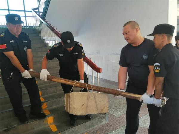 由于該校教學(xué)樓上遺留有一定數(shù)量的花池、石塊、石槽、建筑塊、水泥塊、地板、磚等物,校方排查存在安全隱患,需要把樓頂?shù)臇|西清運(yùn)下來。按照支部組織謀劃安排,當(dāng)日上午8點(diǎn)半,在黨員、中隊長劉宇,預(yù)備黨員、副中隊長楊承濤帶領(lǐng)下,同志們齊心協(xié)力、相互配合,采取接力方式向下轉(zhuǎn)運(yùn)。有的一塊石頭有二三百斤,他們就用繩子捆住向下抬,一個個累得汗流浹背,但沒有一個人叫苦叫累,張運(yùn)洲邊干邊反復(fù)提醒大家注意安全。他們利用一上午時間,把大部分體積較大的石塊、石板、地磚等物安全清理下樓,又把清運(yùn)堆積在樓道的東西,搬運(yùn)到200米外的樓后隱蔽處。