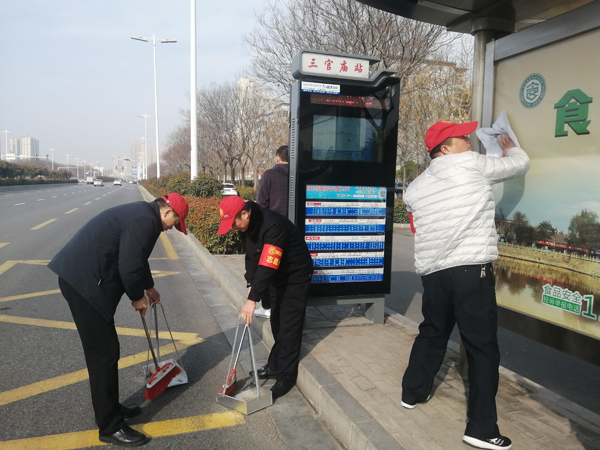 3月5日上午,第五黨支部志愿者帶著掃帚和抹布等工具,來(lái)到人民大道三官?gòu)R公交車站臺(tái)清除垃圾,清理衛(wèi)生死角?;顒?dòng)中,大家協(xié)作配合,發(fā)揚(yáng)不怕苦、不怕臟的精神,對(duì)公交站臺(tái)、人行道及路邊綠化帶內(nèi)的落葉、雜草、垃圾等進(jìn)行了全面清理打掃。經(jīng)過大家的辛勤勞動(dòng),公交站點(diǎn)兩旁的衛(wèi)生干凈整潔、煥然一新。